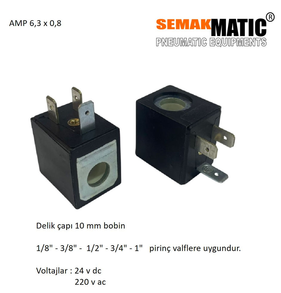 1/8” valf için Bobin: 10 mm delik çapı 22 mm genişlik